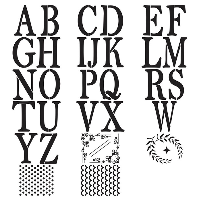 Schablon av kraftig kartong med bokstäver från FolkArt. Perfekt för att skapa monogram till alla typer av heminredningsprojekt. Spraymåla, dutta med svamp eller fyll i med penna, pensel eller roller.