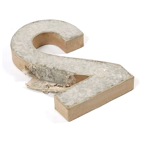 Handgjord bokstav i papier-maché. Bokstaven är ihålig och kan fyllas med t.ex. betong eller gips för gjutning. Skär av baksidan med en brytkniv för att använda bokstaven som en gjutform. Du kan också måla dina papp-bokstäver med hobbyfärg och dekorera efter egen fantasi.