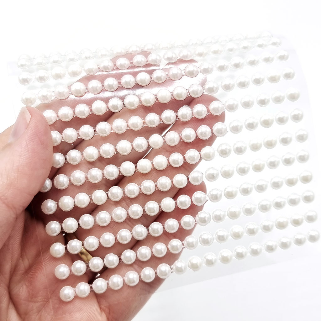 Självhäftande halvpärlor på transparenta remsor som gör dekorationen enkel och smidig. Använd hela remsor som dekorativ kant, eller klipp isär pärlorna och placera dem en och en på kort, scrapbooking och andra pysselprojekt.