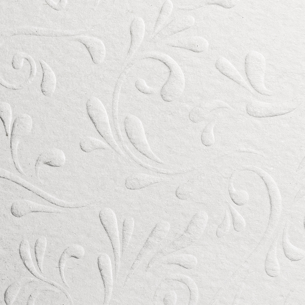 Ett otroligt vackert papper med embossad / präglad yta med upphöjt mönster. Kraftig kartong till kortbas eller omslag på t.ex. inbjudningar, festprogram, bröllop m.m.