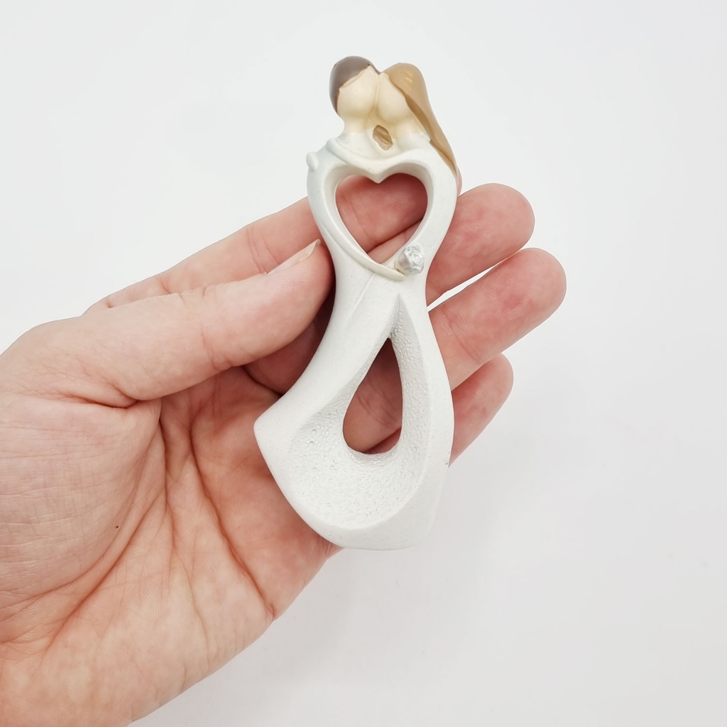 Brudpar i modern stil av polyresin, för tårtdekoration och bröllopstårta. Ett vackert brudpar i omfamning. Klicka på bilden för förstoring.