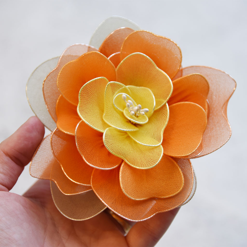 Nylontyg är mycket elastiskt och tunt. Nylon används främst till skapande av dekorativa blommor, fjärilar och trollsländor. Med hjälp av formbar ståltråd, böjer du önskad form som sedan kläs med nylon. Avsluta dina blommor med blomstertejp. Sätt gärna pistiller eller pärlor som en extra touch i din blomma.