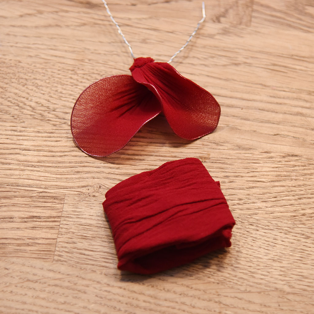 Nylontyg är mycket elastiskt och tunt. Nylon används främst till skapande av dekorativa blommor, fjärilar och trollsländor. Med hjälp av formbar ståltråd, böjer du önskad form som sedan kläs med nylon. Avsluta dina blommor med blomstertejp. Sätt gärna pistiller eller pärlor som en extra touch i din blomma.