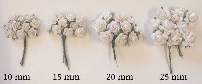 Äkta mullberry rosor av hög kvalitet, till scrapbooking, korttillverkning, pyssel och hobby. Kan limmas fast med flytande lim, eller monteras med den gröna stjälken av ståltråd.
