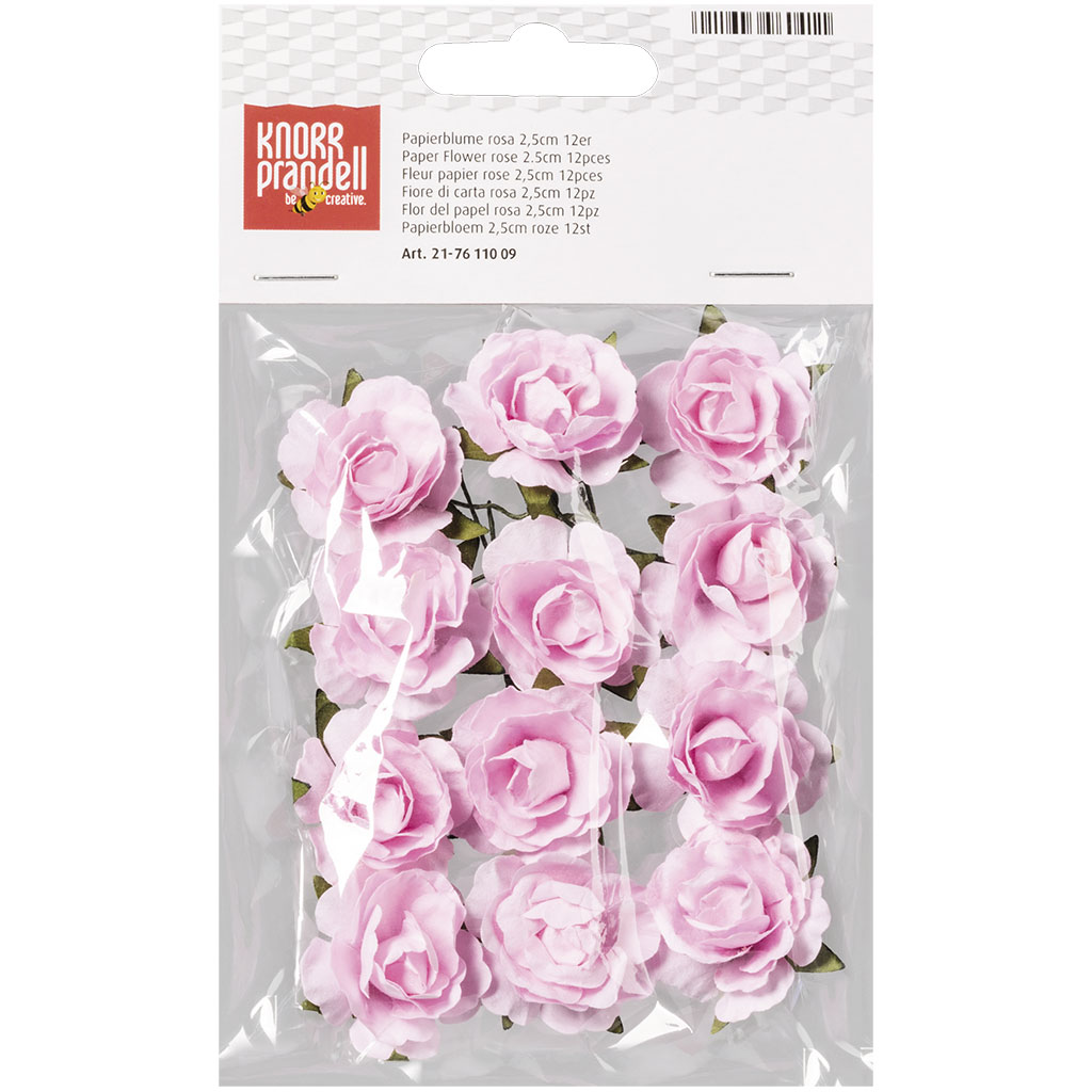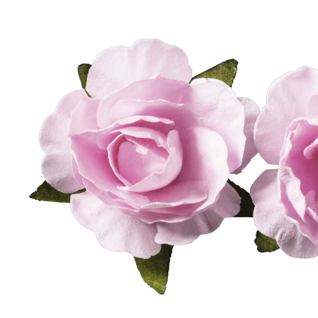 Dekorativa pappersblommor i vacker, ljusrosa nyans. Används till scrapbooking, korttillverkning, DIY-projekt och andra kreativa skapelser. Varje blomma har en självhäftande fästkudde på undersidan för enkel och smidig montering.