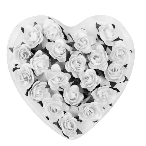 Romantiska, dekorativa pappersrosor som levereras i en hjärtformad ask. Elegant till all scrapbooking, korttillverkning, hemmagjorda alster och andra pysselprojekt.