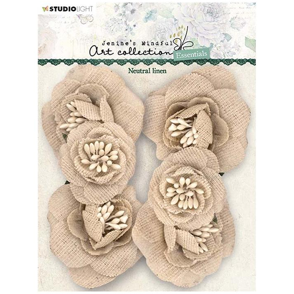 Blommor, Dekorativa blommor med vita pistiller tillverkade av linne, från Studio Light. Perfekt till handgjorda kort, albumlayouter och kreativa hobbyprojekt.
