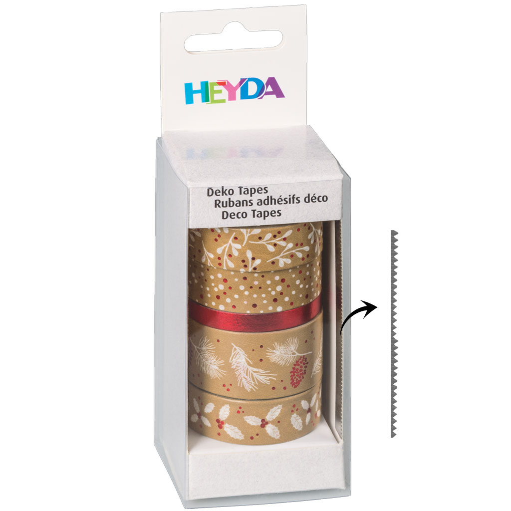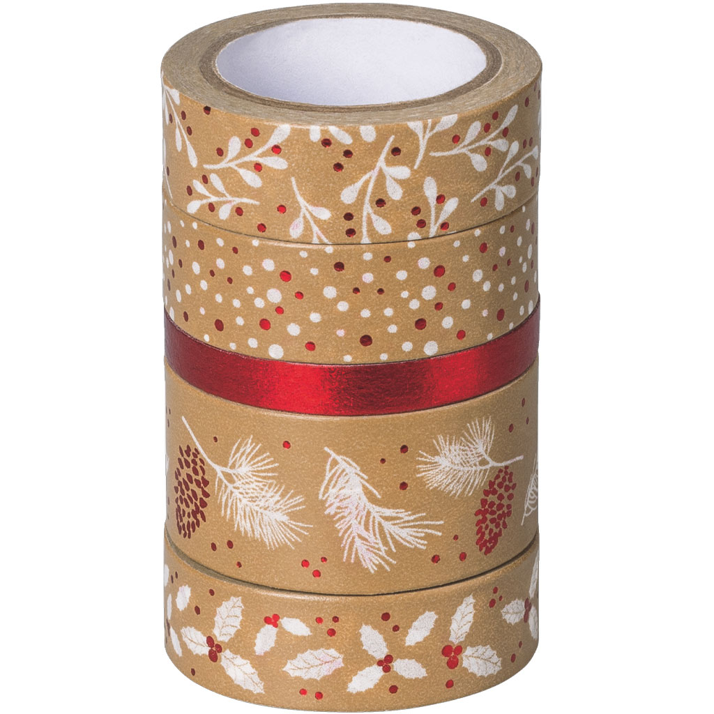 Dekorationstejp, washi tape med metallisk effekt i rött. Perfekt för julpyssel, paketinslagning, kortmakeri och andra kreativa projekt. Tejperna kommer i en praktisk förpackning med rivkant.