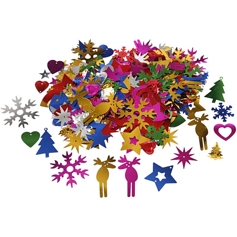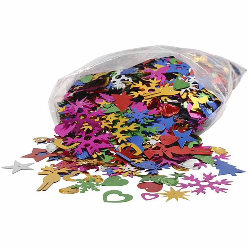 Julpaljettmix - stl. 8-50 mm - Starka färger - 400 g