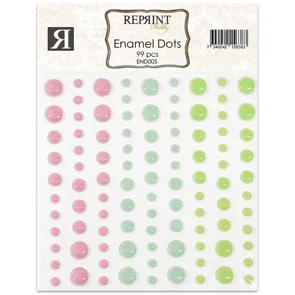 Blanka, självhäftande enamel dots i tre olika färger som matchar Reprints papperskollektion "Happiness". Används som dekoration till handgjorda kort, scrapbooking, mixed media m.m.
