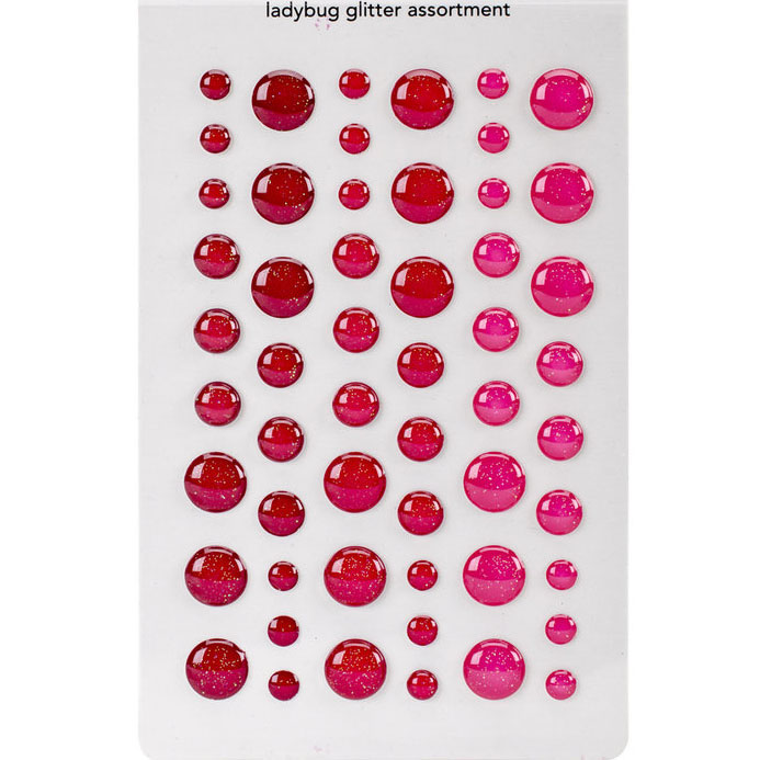 Självhäftande, runda pärlor med blank yta och platt baksida från Doodlebug. Vackra glittriga pärlor för dekoration inom scrapbooking och pyssel. Används främst till papper och kartong, men kan också fästas på textil, plast, läder, trä m.m, men bör då limmas med starkare lim. Kan användas som dekoration på precis ALLT! Och snyggt blir det!