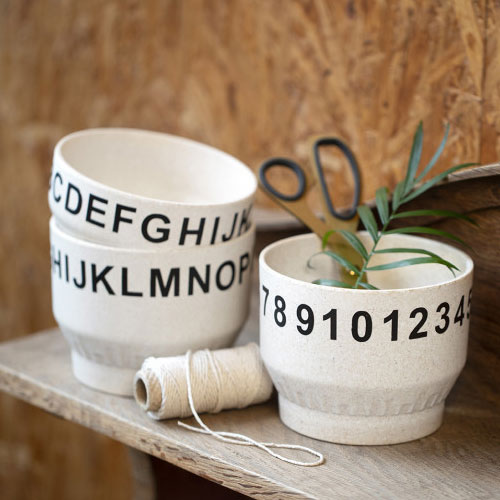 Skål/kruka med plissémönster tillverkat av bambufibrer.
