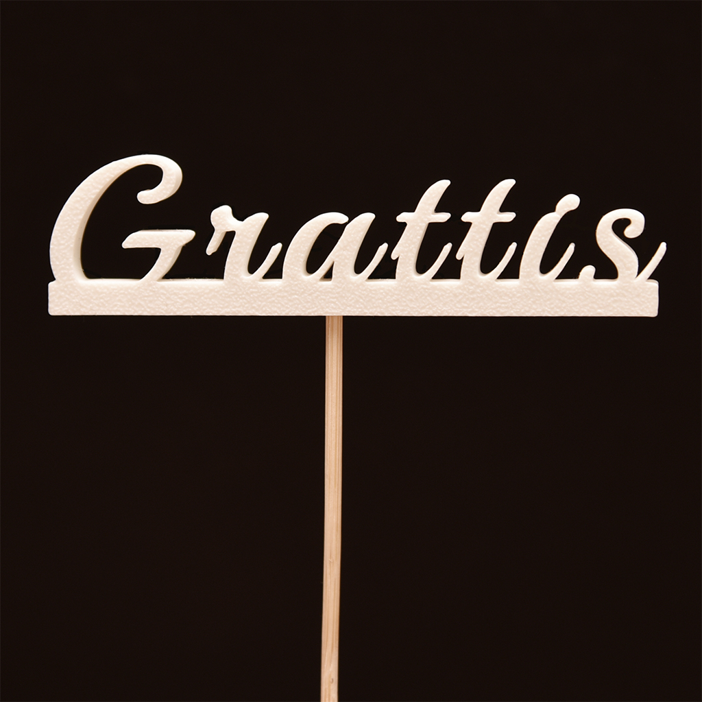 Grattis - Skylt På Pinne - Vit - 9 x 2,5 cm
