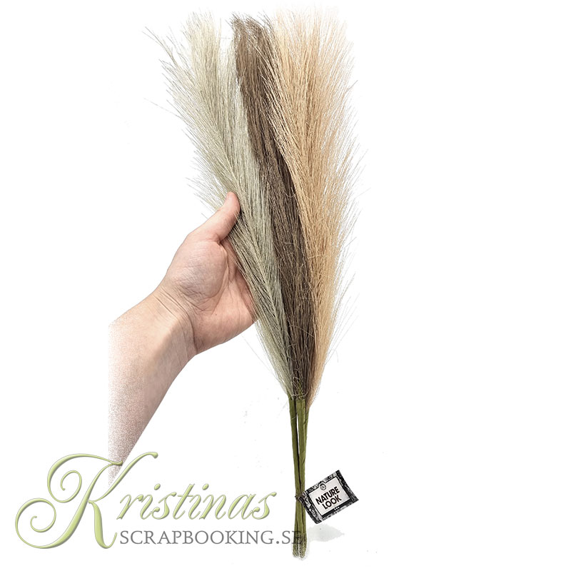 Konstgjort pampagräs av bra kvalitet i fina, dova färger. Gör vackra kransar och dekorationer eller sätt dem i en vas som de är. Gräset är hållbart och skräpar inte ner som äkta torkat gräs gärna gör och håller därför längre.