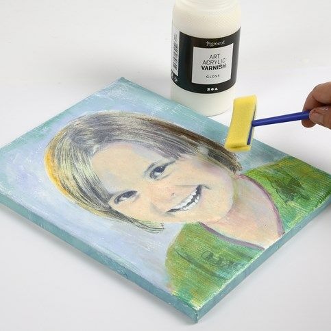 Vattenbaserad lack som kan användas för att skydda akrylmålade tavlor och verk. Blir blank och transparent när den torkar.