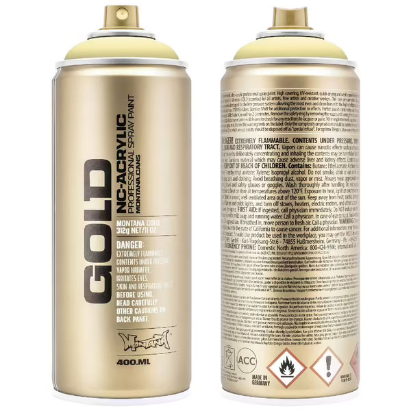 Montana GOLD sprayfärg är en NC-Akrylbaserad sprayfärg med hög täckförmåga. Färgen fäster på de flesta ytor utan att blekas eller krackeleras, även flexibla. Montana GOLD är känd för sin höga kvalitet och används av proffs och hobbykonstnärer över hela världen. Med Montanas exklusivt framtagna "low pressure system" får du jämna och rena linjer.