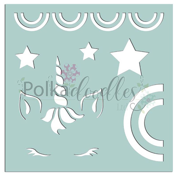 Schablon Polkadoodles - Unicorns & Rainbows - 6x6 Tum