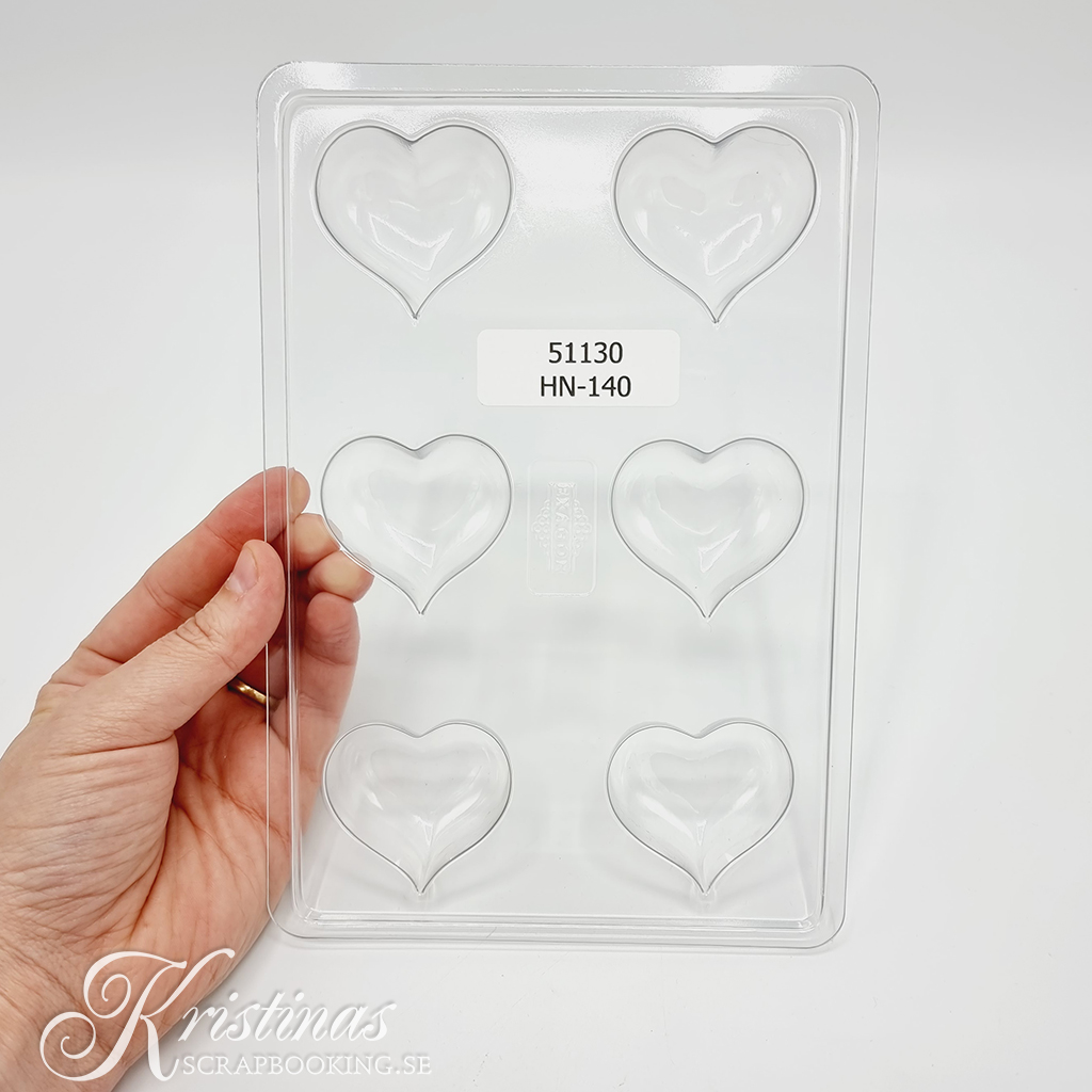 I denna gjutform kan man gjuta 6 st flytande ljus i form av hjärtan.