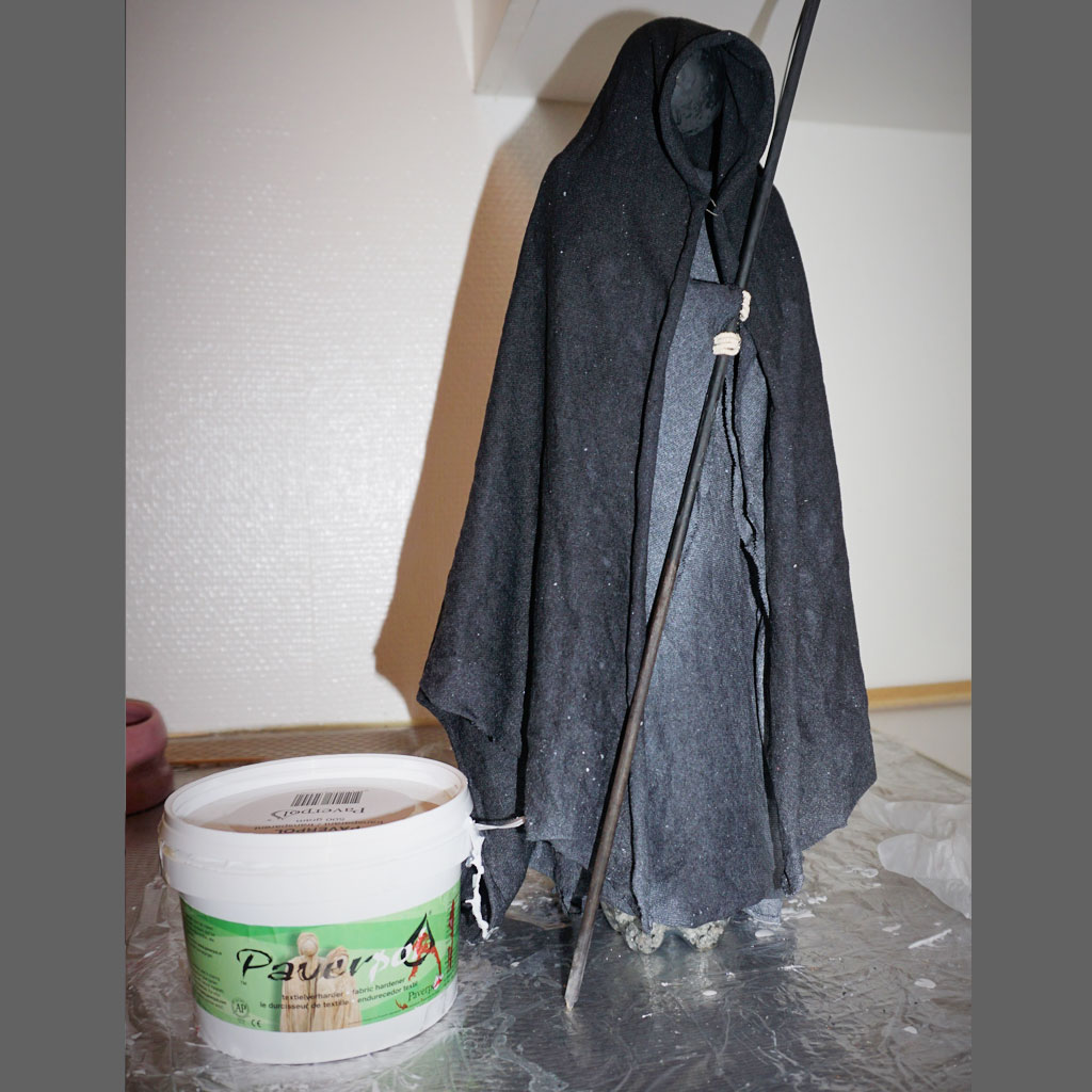 4. Nu är det dags att klä din figur. Doppa en tygbit i Paverpol Skulpturlim och lägg över armarna, sedan kroppen och axlarna.
