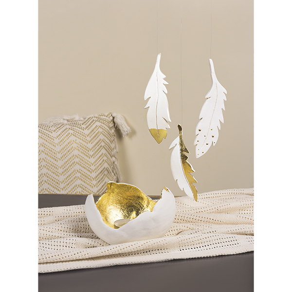 Lättviktig och lufttorkande modelleringsmassa i ljus, benvit nyans. Fäster på glas, trä, plast, keramik och frigolit. När leran torkat kan föremålet borras eller filas och dekoreras med akrylfärg eller med bladguld.