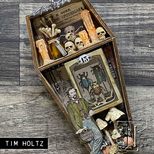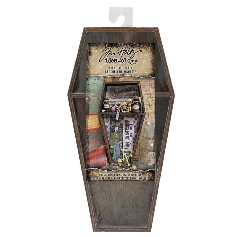 Tim Holtz Vignette Coffin är en liten trälåda som är idealisk för att skapa ett läskigt 3D-collage eller kuslig scen inför halloween. Dekorera kistan med läskiga tillbehör från Tim Holtz halloween-tema.