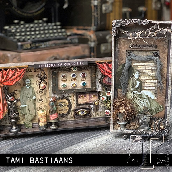 Verklighetstrogna ögon av hårdplast i flera olika färger från Tim Holtz Idea-ology. Perfekt till halloweenkort, mixed media och annat halloweenpyssel.