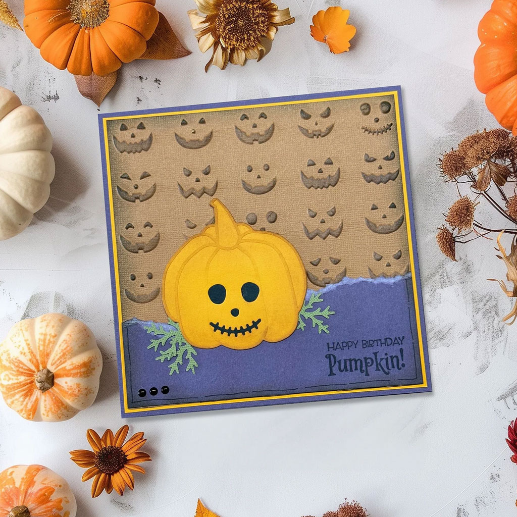 Schablon av Metall - 15x15 cm - Pumpkin Faces - Vaessen