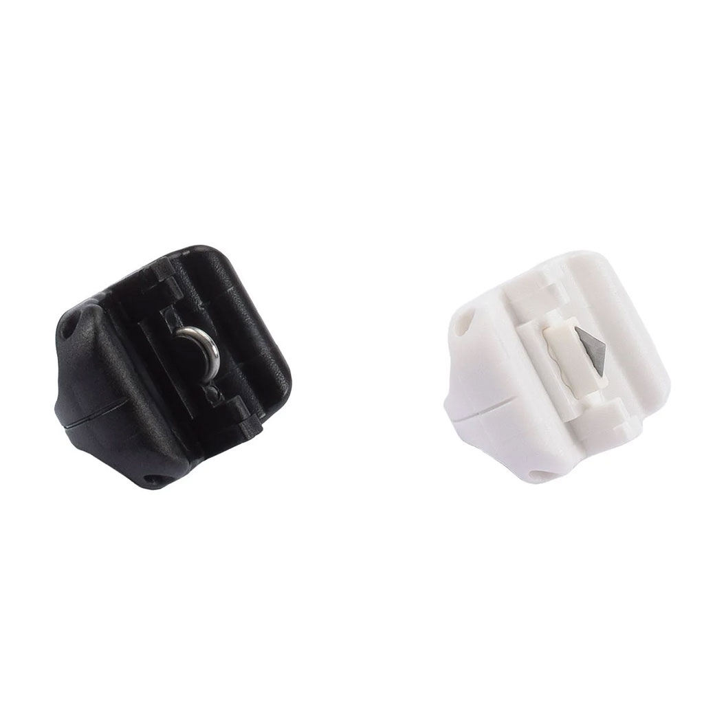 Skärblad (vit) och bigare (svart) till skärmaskinerna från Vaessen med artikelnummer 2207-110 (rosa), 2207-109 (mint) och 2207-113 (graphit).
