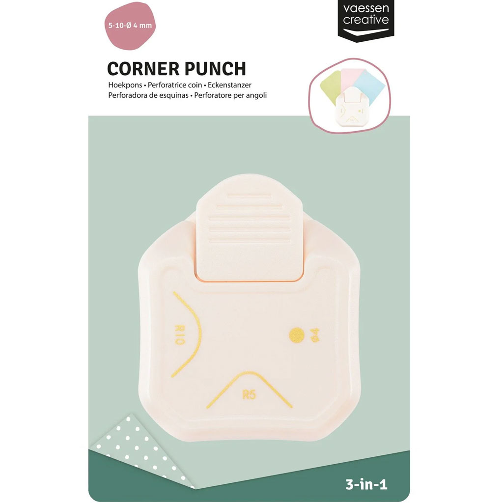 Med denna 3-i-1 hörnstans ger du papprets hörn en snygg finish, men du kan också enkelt göra ett 4 mm stor hål i dina etiketter. Använd stansen för att runda av eller forma hörnen på visitkort, inbjudningar, foton, kort, scrapbook-sidor och andra pappersprojekt.