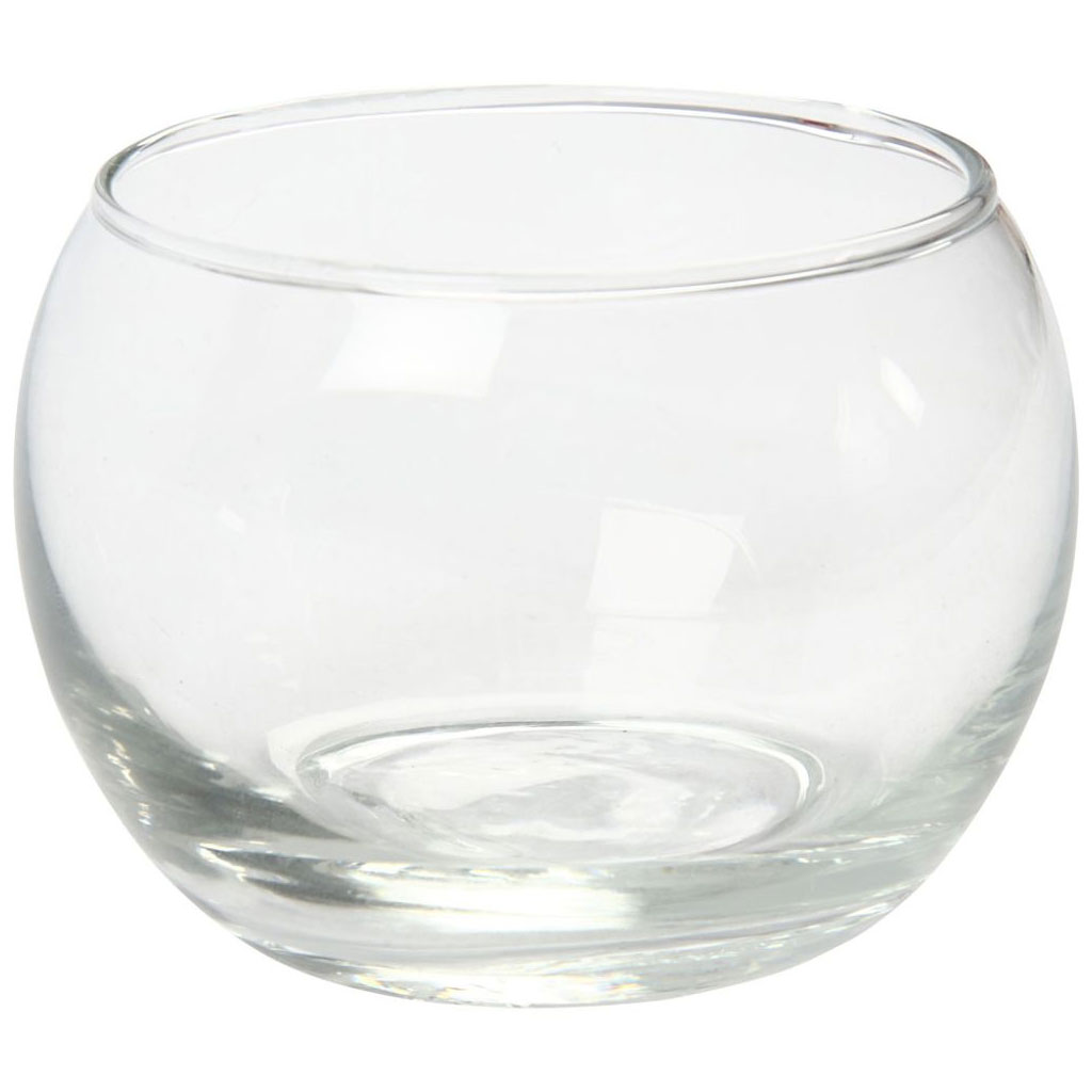 Kulformade värmeljushållare i klarglas. Måla med t.ex. akrylfärg, spraya, dutta eller limma fast decoupage-papper och servetter med lack.