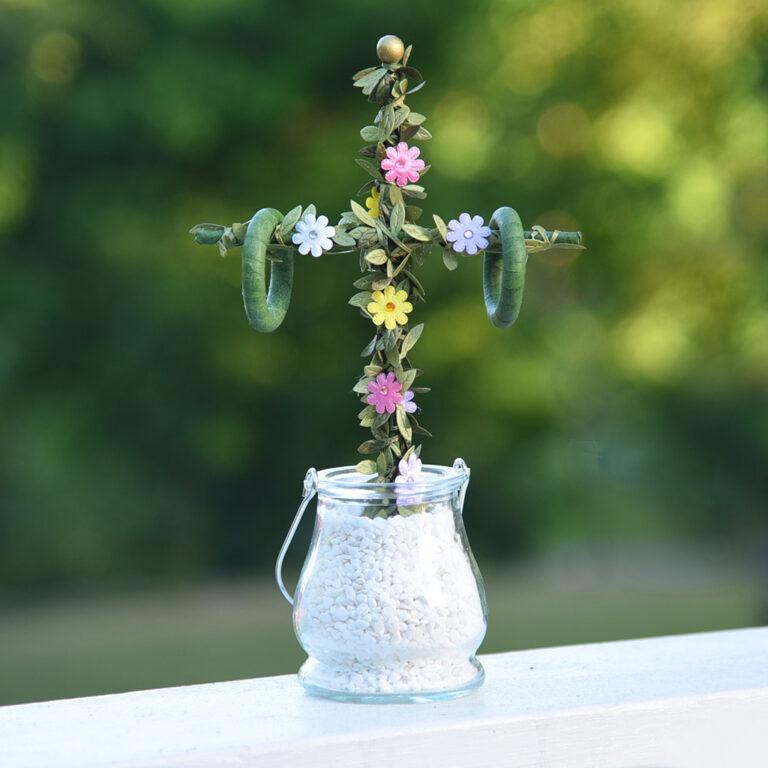 Grönt band med mjuka blad i textil. Varje blad är ca 15 mm långt. Fästes bäst med lim på baksidan av varje blad, eller en tunn linje flytande lim, t.ex. Tacky Glue eller textillim, längs med den långa stjälken.