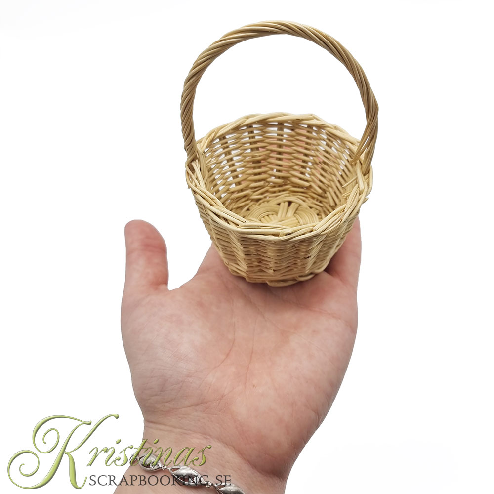 Handgjord, flätad miniatyrkorg med handtag till miniatyrträdgårdar, blomsterarrangemang eller för att stoppa små gåvor/godis i.