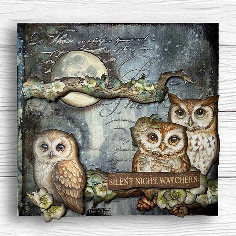 Schablon från Stamperia med vintermotiv från kollektionen "The Owl's House". Stencilen är enkel att arbeta med tack vare dess flexibilitet och kraftfulla material. Arket är 0,25 mm tjockt och tillverkat i tålig, böjlig plast. Perfekt för att åstadkomma 3D-effekter med t.ex. texture paste, gesso eller vax i olika färger. Passar även till spraymålning och mixed media-alster.