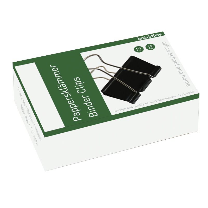 Pappersklämma 19 mm bred - 12 Pack - Svart