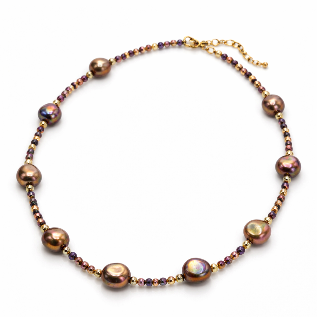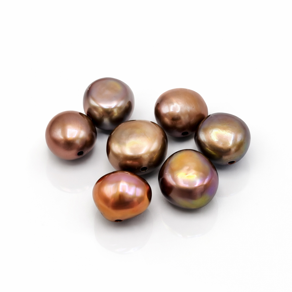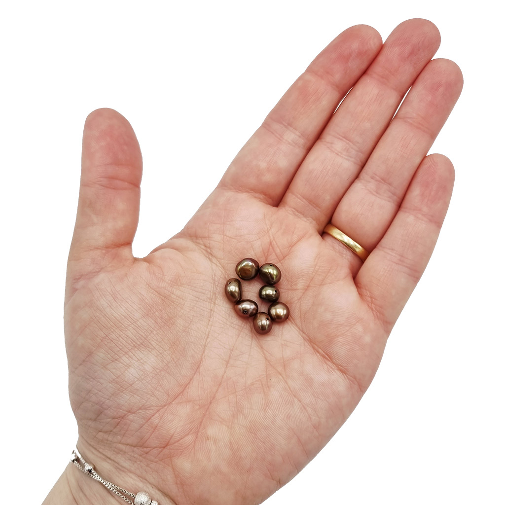 Äkta, odlade sötvattenpärlor för smyckestillverkning i brun/gröna nyanser. Tidlösa och klassiska pärlor som passar till det mesta. Ojämna, naturliga former som gör varje pärla unik.