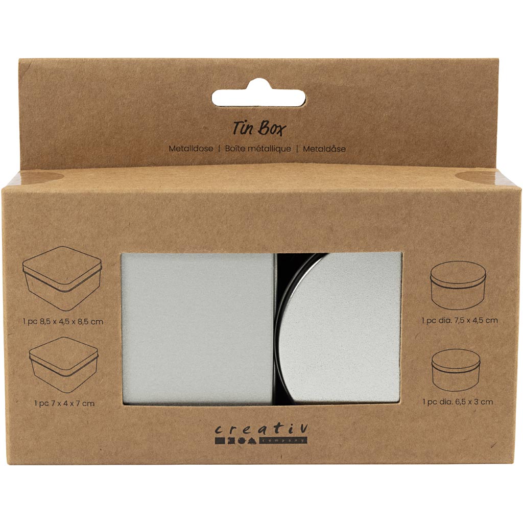 Smidiga plåtburkar i stilren design för hemgjorda tvålar, små ljus, presenter och förvaring av småsaker som hårnålar och snoddar. De tåliga locken skyddar innehållet och gör burkarna praktiska även som resefodral för kreativa projekt.