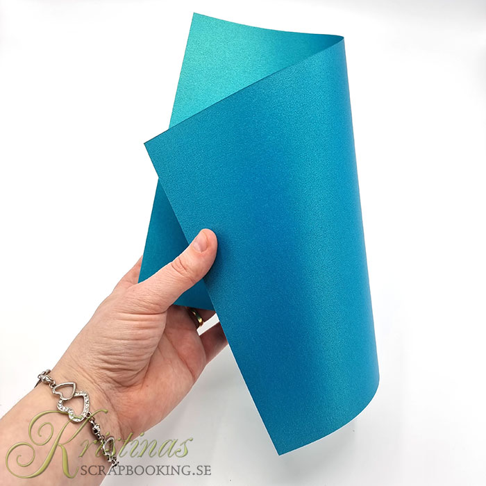Enfärgade, kraftiga 220 grams-cardstock i vacker färg med pärlemoyta. Färgen skimrar vackert i turkos och blå. Mycket effektfullt till scrapbooking, inbjudningar, korttillverkning och papperspyssel. Går utmärkt att använda till utskrift med en laserskrivare.