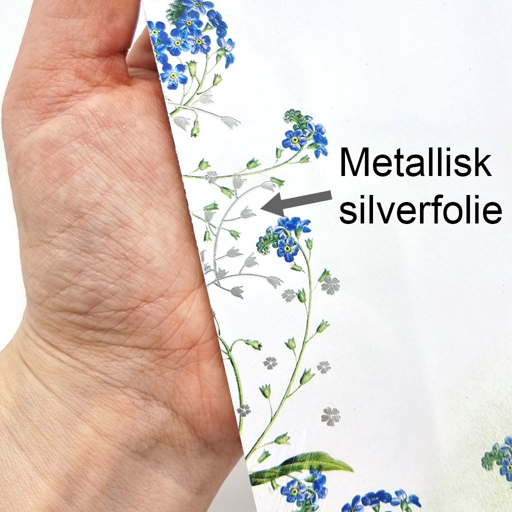 Dekorativa A4 papper med elegant blomsterram och detaljer i metallisk silverfolie. Papperna lämpar sig för diplom, certifikat, brevpapper, menyer, prislistor m.m. Passar också perfekt till brevkorrespondens, inbjudningar och mycket mer.