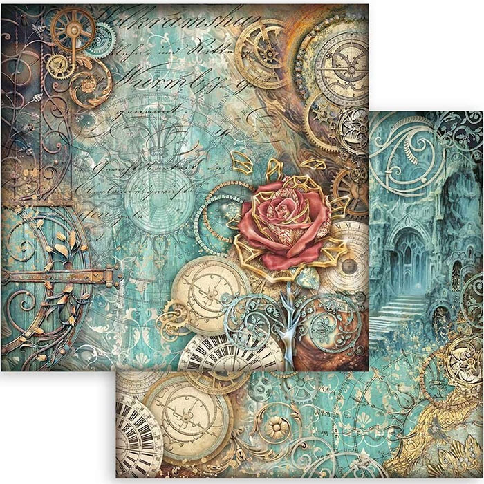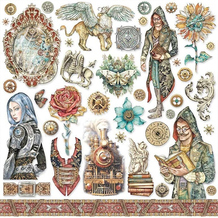 Scrapbookingpapper från italienska Stamperia. Kollektionen "Sir Vagabond in Fantasy World" av Antonis Tzanidakis är något utöver det vanliga. Otroliga detaljer, i en kollektion där steam punk möter fantasy. Kraftiga, dubbelsidiga papper för pyssel och scrapbooking. Matcha med dekorationer från samma kollektion.