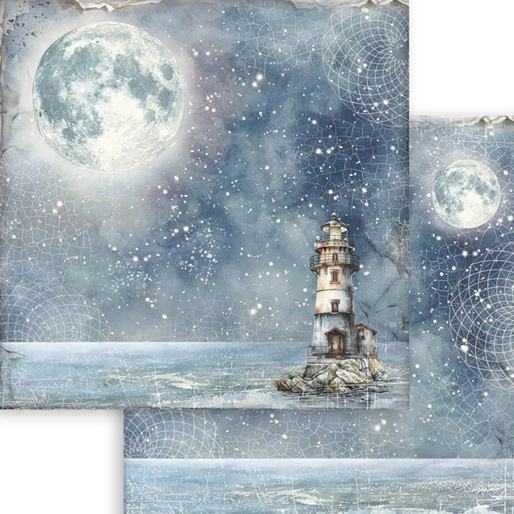 Ge dig ut på en kreativ resa med The Silent Sea-kollektionen från Stamperia, designad av Cristina Radovan. Denna rofyllda kollektion innehåller handritade fyrar, snäckor, havskartor, vilda hästar och strandstugor i mjuka blå toner och neutrala nyanser. Med matchande rispapper, rub-ons, die cuts och mycket mer är kollektionen perfekt för scrapbooking, korttillverkning och mixed media-projekt.