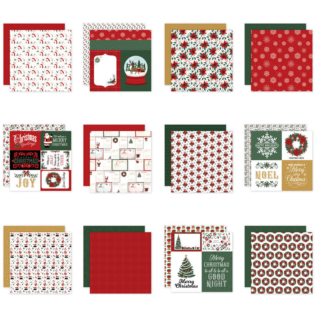 Pappersblock med mönstrade scrapbookingpapper. 12 st lösa, dubbelsidiga papper med härliga julmönster på både fram- och baksida. Kraftiga ark i klassiska färger och julmotiv som passar perfekt till årets julkort och julpyssel. Inklusive ett stort 30x30 cm ark med dekorativa stickers.