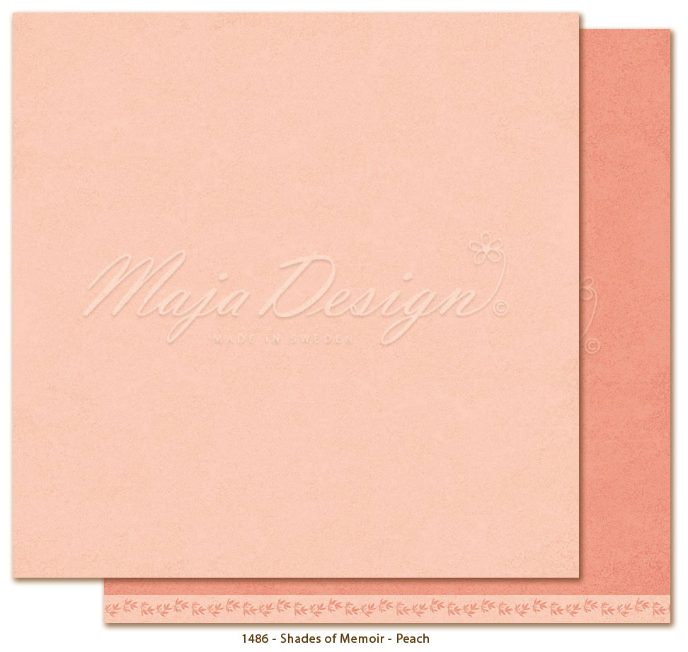 Enfärgat, dubbelsidigt cardstock med slät yta. Ljus framsida, mörkare baksida. Matchar mönsterpapperna i papperskollektionen "Memoir" från Maja Design.