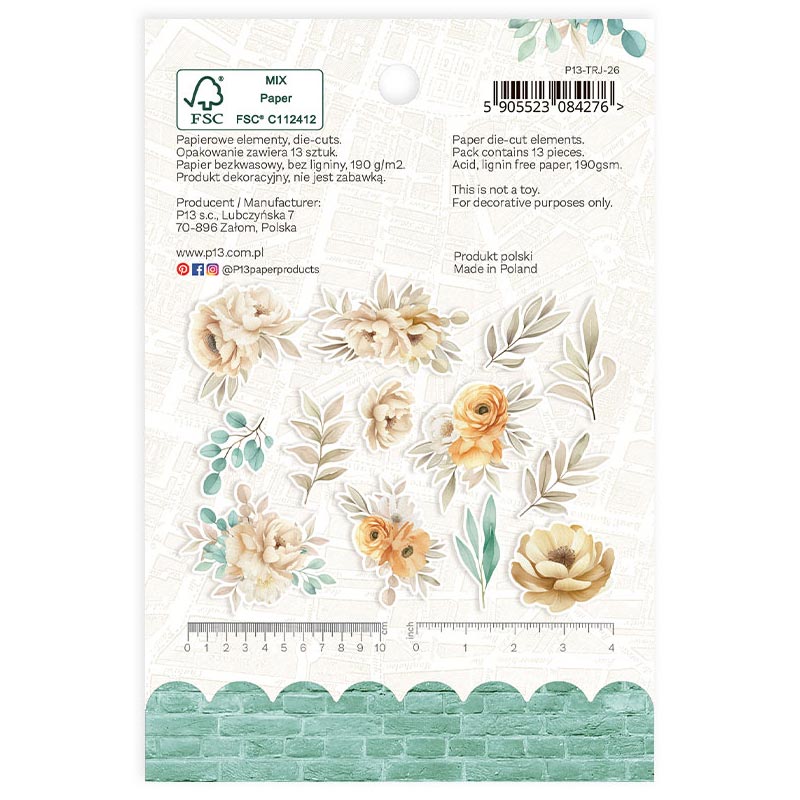 Färdigutskurna motiv i kraftig kartong, från serien "Travel Journal". Högkvalitativa motiv med färgtryck att använda som dekoration till scrapbookingkort, minialbum, bullet journal, layouter i scrap-album eller till tags och etiketter. Fäst motiven med lim eller distanskudde för att bilda upphöjd 3D-effekt. Matcha med mönsterpapper och stickers från samma serie.