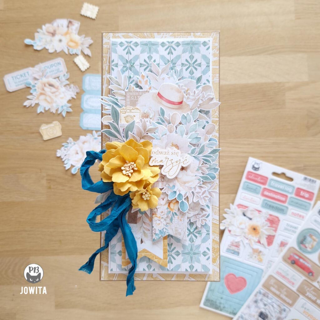 Upptäck serien "Travel Journal", från polska papperstillverkaren P13. En pappersserie för scrapbooking med semester- och rese-tema. Denna kollektion består av härliga, somriga färger i mjuka nyanser av gul, beige och turkos. Matcha med die cuts och stickers från samma serie.