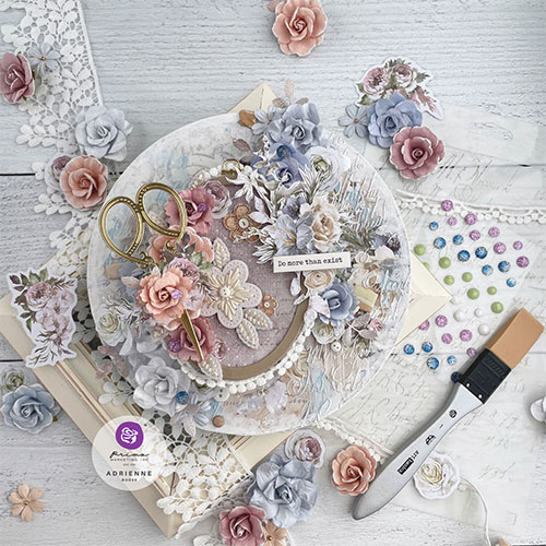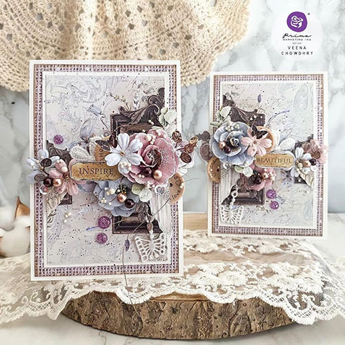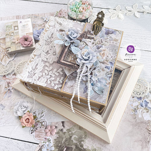 Dekorativa och detaljrika blommor av mulberrypapper från Prima Marketings kollektion "Bohemian Heart". Mycket välgjorda blommor för scrapbooking och mixed media-projekt i ljusblå nyanser som passar perfekt till mönsterpapperna i samma kollektion.