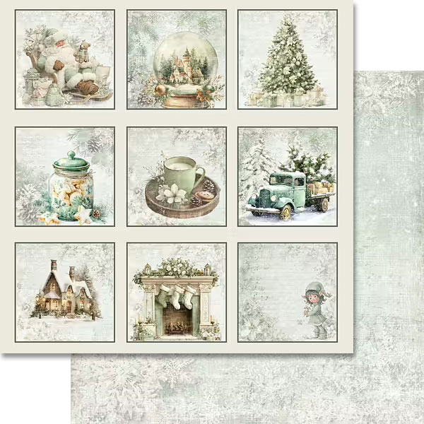 Scrapbookingpapper från Reprint med julmotiv och vintertema. Perfekt att använda till handgjorda kort, etiketter, albumlayouter och andra kreativa alster. Tjockt 170 grams papper med matt yta och motiv på fram- och baksida.