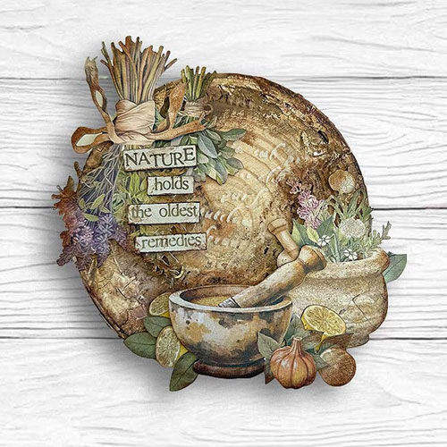 Kollektionen Herbarium Silvae består av dova gröna toner, varma neutrala nyanser och botaniska motiv. Matcha med mönstrade papper, stämplar, schabloner och decoupagepapper från samma kollektion.