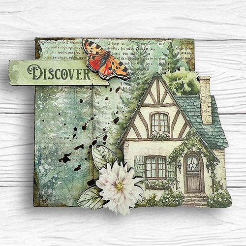 Kollektionen Herbarium Silvae består av dova gröna toner, varma neutrala nyanser och botaniska motiv. Matcha med mönstrade papper, stämplar, rub ons och decoupagepapper från samma kollektion.