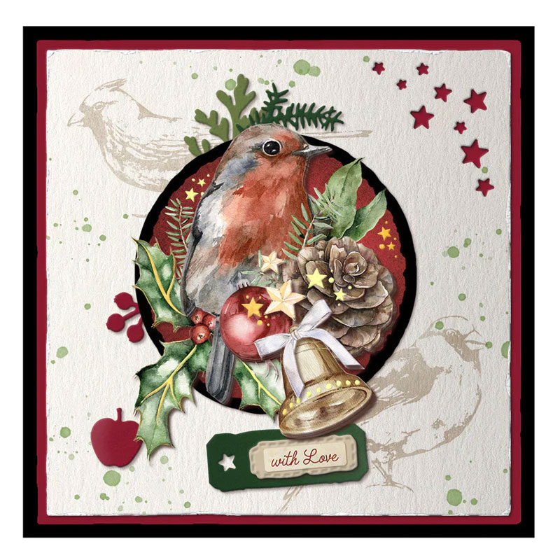 Stansa ut diesen med din stansmaskin och montera delarna till ett passande julkort. Matcha med mönstrade papper och andra tillbehör från samma serie: "Magical Christmas".