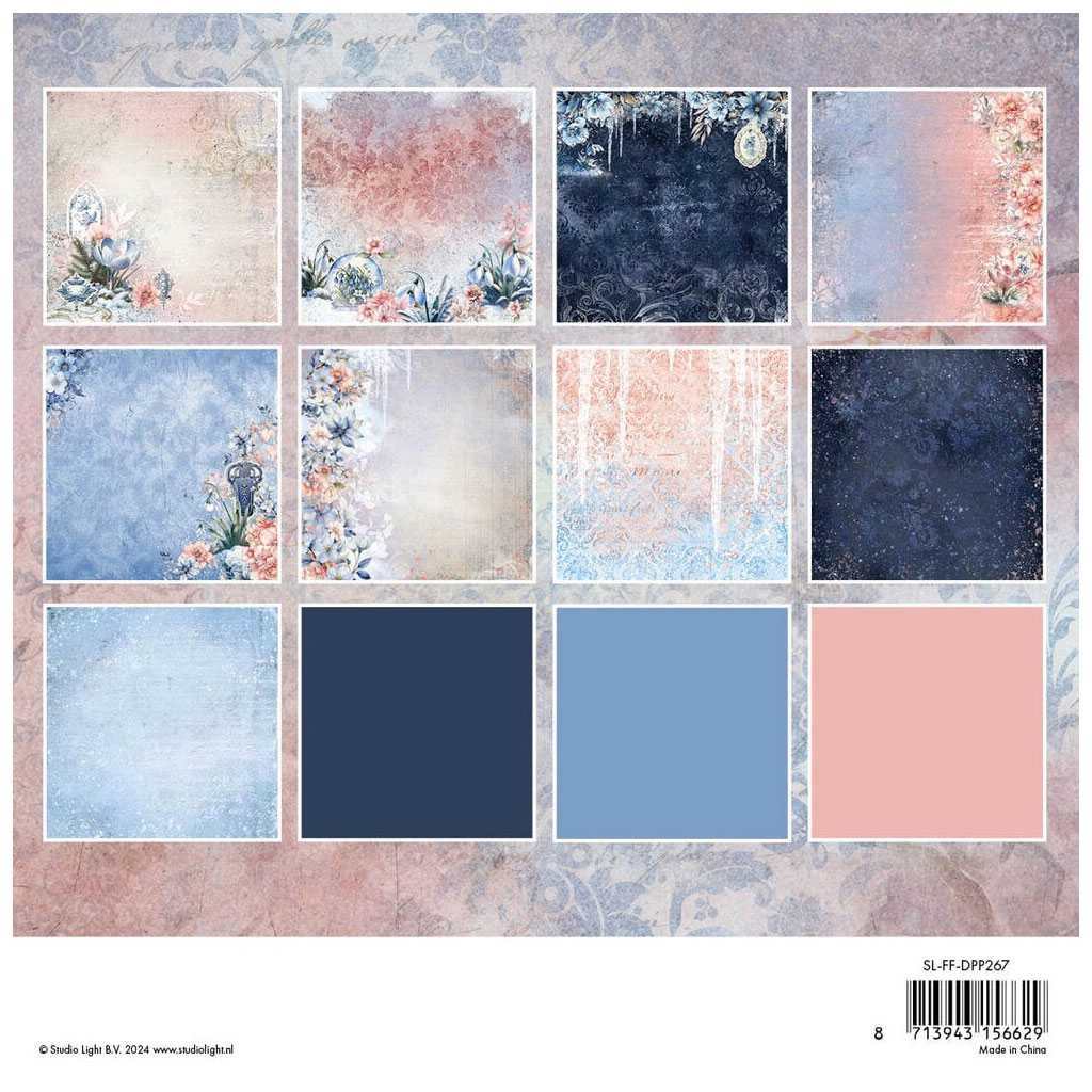 Paper pad med mönstrade ark för scrapbooking och korttillverkning. Vinterkollektion i frostiga färger från Studio Light. Matcha med andra tillbehör från samma serie: "Frozen Flowers".